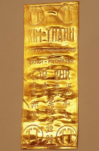Spændende vietnamesiske guldbarrer af finguld, støbt hos guldhandleren Kim Thanh, der drev virksomhed i Saigon, Hanoi, Hong Kong og Phnom Penh før 1975. Der er to barre på 15 gr. pr. stk. samt en halv barre på 7,5 gr.