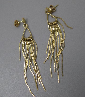 Smykkesæt bestående af halssmykke og par ørestikker af 18 kt. guld, stemplet 750. Udformet som sirlige, uens lange kæder på række, afsluttet med guldperler. Halskæde L. ca. 48 cm., ørestikker L. ca. 70 mm. Vægt tilsammen ca. 16,5 gr. Finguld indhold ca. 12,4 gr.