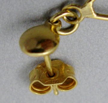 Smykkesæt bestående af halssmykke og par ørestikker af 18 kt. guld, stemplet 750. Udformet som sirlige, uens lange kæder på række, afsluttet med guldperler. Halskæde L. ca. 48 cm., ørestikker L. ca. 70 mm. Vægt tilsammen ca. 16,5 gr. Finguld indhold ca. 12,4 gr.