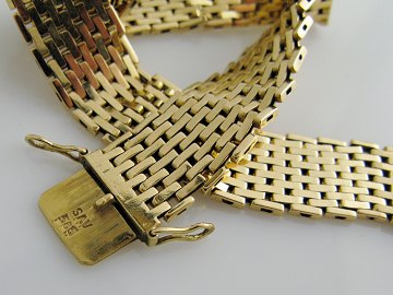 Armlænke af 14 kt. guld, L. ca. 19 cm., vægt ca. 27,7 gr. Finguld indhold ca. 16,2 gr.