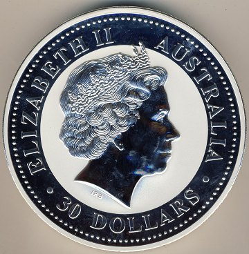 Australien, 30 dollar SØLV 2005 Kookaburra - 1 kg FINSØLV