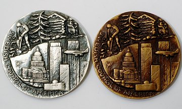 Jubilæumsmedaillesæt udgivet i anledning af 200-året for de Forenede Stater. Udgivet af Swedish Coucil of America, Minneapolis, Minnesota. Gravør: Wallenberg. Ø. 50 mm.