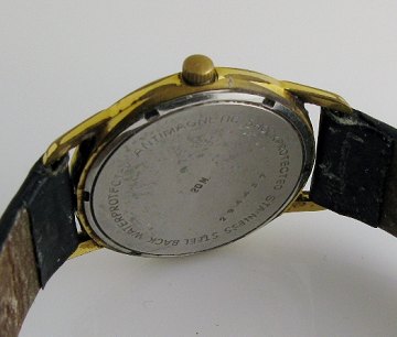 HOFA herre armbåndsur i kasse af forgyldt metal. Champagnefarvet skive med stregindikation. Anti chok proof og waterproof til 20 m. Kasse diam. ca. 34 mm., læderrem. HOFA Swiss omkring 1960.