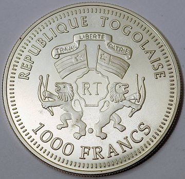 Togo, 1000 francs FINSØLV 2005 Proof - KM 45 *Nürnberg - Fürth Adler 1835*