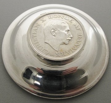 Lille skål af sølv med jubilæumsmønt 2 kr SØLV 1937