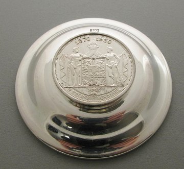 Lille skål af sølv med jubilæumsmønt 2 kr. SØLV 1930