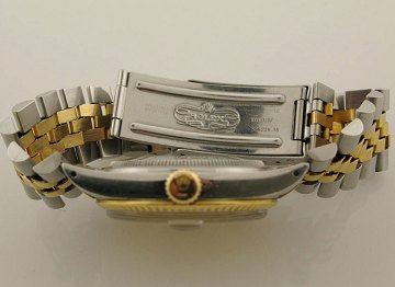 Rolex Oyster Perpetual Datejust herre armbåndsur af stål og 18 kt. guld, urskive af guld, plexiglas, dato ved 3" position. Diam. 36 mm.