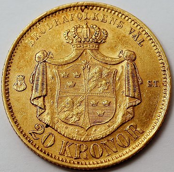 Sverige, Oscar II, 20 kr GULD 1875 ST - SM 3 & Sieg 89