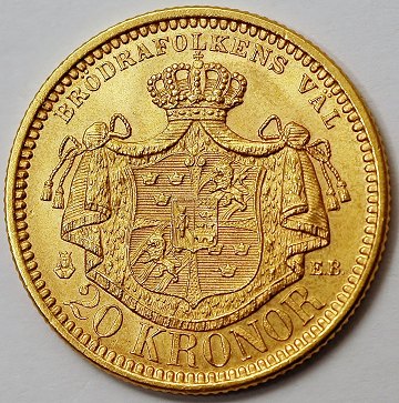 Sverige, Oscar II, 20 kr GULD 1898 EB - SM 19 & Sieg 91