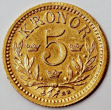 Sverige, Oscar II, 5 kr GULD 1881 EB - SM 34 & Sieg 83