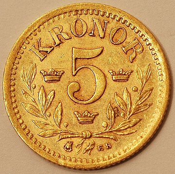 Sverige, Oscar II, 5 kr GULD 1894 - SM 38 & Sieg 83