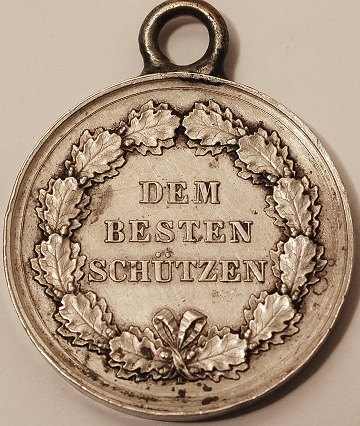 Tysk skydemedaille af sølv, på fs ses portræt af Ludwig II og på bs. står der: "Dem Besten Schützen". Ø. 35 mm.