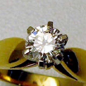 Ring af 18 kt. guld, prydet med flot, brillantsleben diamant på ca. 0,60 ct., formodentlig Wesselton SI. Str. 53, samlet vægt ca. 5,3 gr.