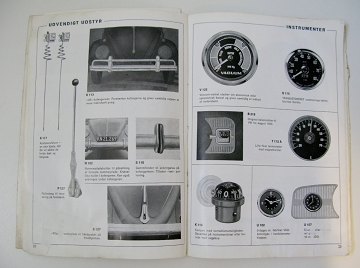 Hæfte med 38 sider illustrerede og beskrevne tilbehørsdele til folkevogns modeller omkring 1966, inkl. prisliste.