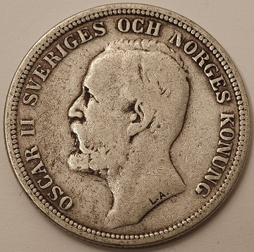 Sverige, Oscar II, 2 kr 1890 EB - Sieg 59