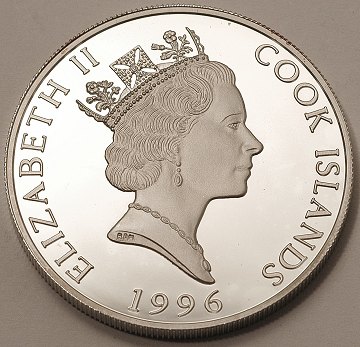 Cookøerne, 5 dollars SØLV 1996 Proof - KM 302