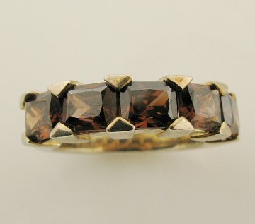 Ring af massiv Sterling sølv, dekoreret 5 facetslebne, brunorange zirkonia. Str. 55, samlet vægt 8,1 gr.