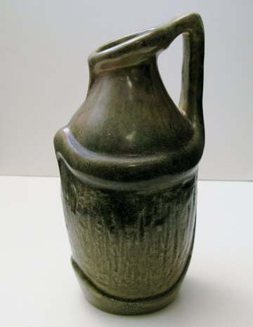 Höganäs vase af keramik med olivengrøn glasur, signeret K.S. H. ca. 25 cm.