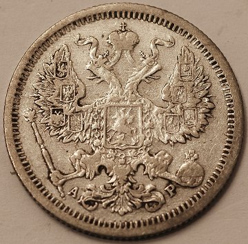 Rusland, 20 kopek SØLV 1905CПБ - Y# 22a.1