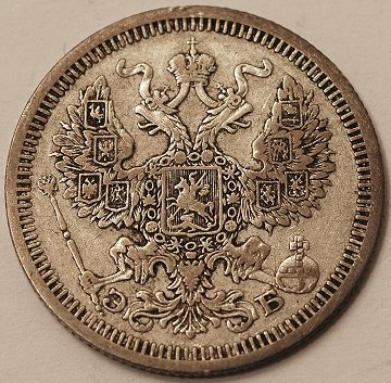 Rusland, 20 kopek SØLV 1908CПБ - Y# 22a.1