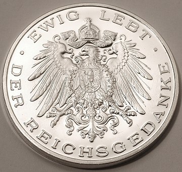 Tysk medaille af sølv, præget i erindring om Otto Eduard Leopold Fürst von Bismarck (1815 - 1898). Han var greve og fra 1871 fyrst von Bismarck-Schönhausen, hertug af Lauenburg.