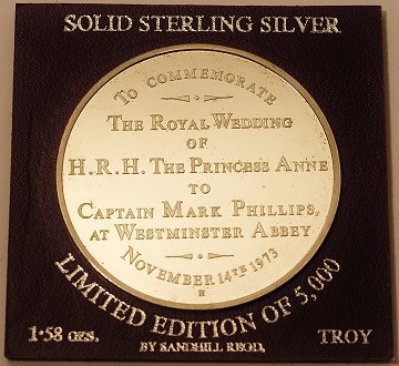 Prisesse Anne & Mark Phillips - Bryllupsmedaille af SØLV