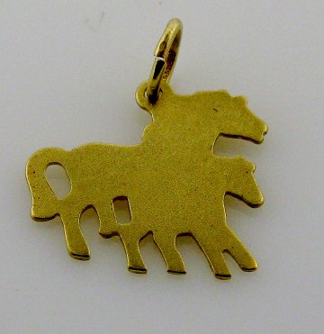 Vedhæng i form af hest med føl, vægt ca. 0,6 gr.