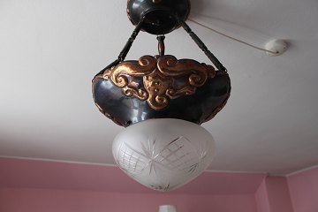 Ampel i jugendstil med dekorationer i Bindesbøll form.