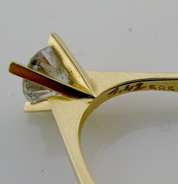 Ring af 14 kt. guld, prydet med brillantsleben diamant, 1,47 ct., Samlet vægt ca. 4,1 gr., Str. 52