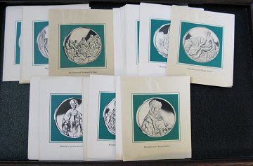 Serie med 50 medailler af sterlingsølv, dekoreret med motiver fra Rembrandts omfattende virke. Medaillerne er i proof kvalitet, præget hos Franklin Mint og i displaykiste med 5 skuffer og messingbeslag. Til hver medaille medfølger et lille hæfte med beskrivelsen af emnet samt oplysning om modellørens navn. Finsølv indhold lige godt 3 kg.