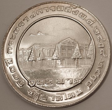 Thailand, Rama IX, 100 bath SØLV 1975 Ucirkuleret - KM 106