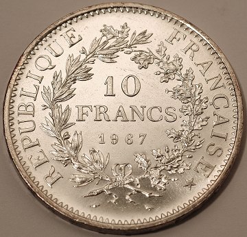 Frankrig, 10 francs SØLV 1967 - KM 932