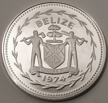 Belize, 10 dollars SØLV 1974 Proof - KM 45a