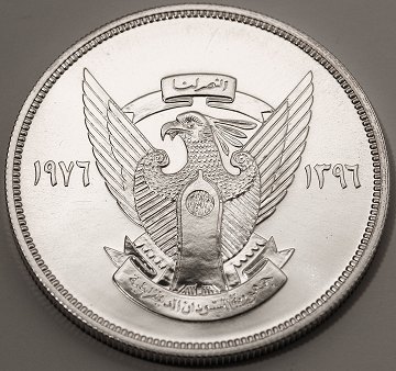 Sudan, 5 pounds SØLV 1976 Ucirkuleret - KM 71 *Flodheste*