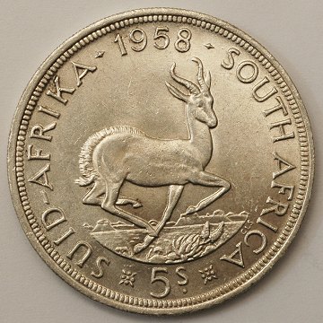 Sydafrika, 5 shillings SØLV 1958 - KM 52
