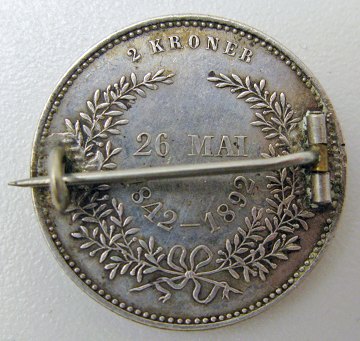 Møntbroche med Chr. IX 2 kr. jubilæumsmønt 1892, Vægt ca. 15,5 gr.