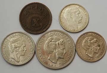 Et mindre lot bedre danske mønter, bestående af: 5 øre 1917, 1 kr 1875, 1915 og 1980, 2 kr 1875, 1903 og 1916, 5 kr 1960, 1964 og 1980, 10 kr 1967 og 1979.