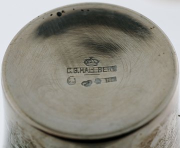 Et par små svenske præmiepokaler af sølv, hvorpå der står "Svensk Dufafvelsförening *" samt "1.sta Pris 1914". Stemplet C.G. Hallberg. H. 6,2 cm.