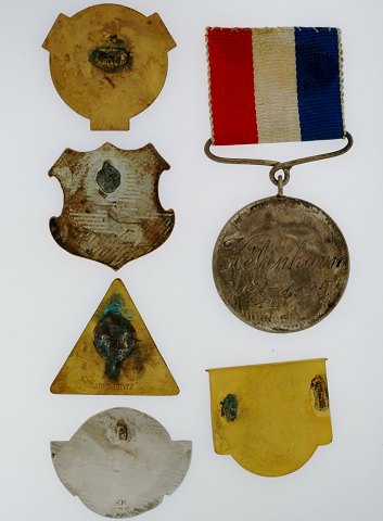 Interessant mindre samling medailler og badges fortjent af dansk politimand og eliteidrætsudøver. Samlingen består af: Norsk badge af sølv, stemplet "HH 830 S", "Skandinaviska Politistävlingarna i Stockholm 1933" af forgyldt og emaljeret metal, "Politi Idrettstevne Oslo 1936" af forgyldt og emaljeret metal, "Politiets Skandinaviske Idrætsstævne i København 1939" af forgyldt og emaljeret metal, tysk badge af forgyldt og emaljeret metal fra stævne i 1931 samt Politiets Idrætsforenings af 1920, medaille m. bånd.