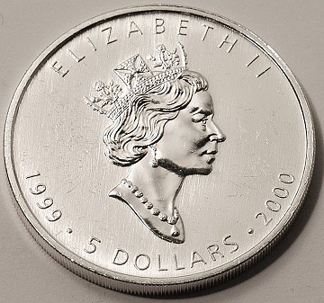 Canada, 5 dollars FINSØLV 2000 - KM 187 *1 ounce FINSØLV*