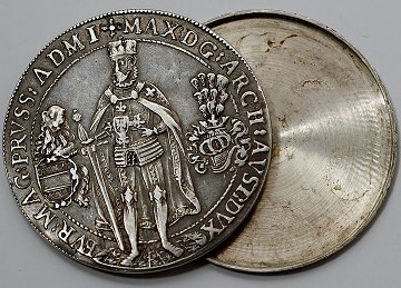 Spændende skruedaler af sølv præget 1612 under Maximilian I.