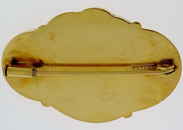 Broche af 8 kt. guld, udført m. stiliseret bladværk. Stemplet "333 AD". L. 40 mm.
