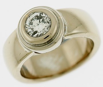 Kraftig ring af 18 kt. rhodineret guld, prydet m. brillantsleben diamant på ca. 0,50 ct. Str. 46.