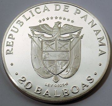 Panama, 20 balboas STERLINGSØLV 1976 Proof - KM 31