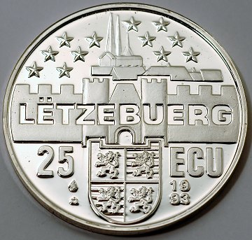 Luxembourg, 25 ecu SØLV 1993 Proof - *Joseph Bech*