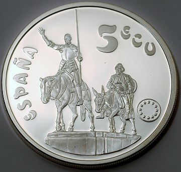 Spanien, 5 ecu SØLV 1994 Proof - *Miguel de Cervantes*