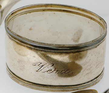 Lot serveringsdele, servietringe og flødekande af plet, 10 stk.