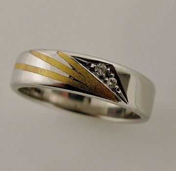 Ring af platin med guld dekorationer, prydet med to brillantslebne diamanter Top Wesselton vsi, oplyst stemplet 0,024 ct. Ring Str. 53, samlet vægt ca. 8,0 gr.
