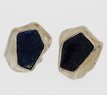 Ørestikker af sterlingsølv, prydet m. lapis lazuli (navnet lapis lazuli kommer af arabisk og latin og betyder blå sten).