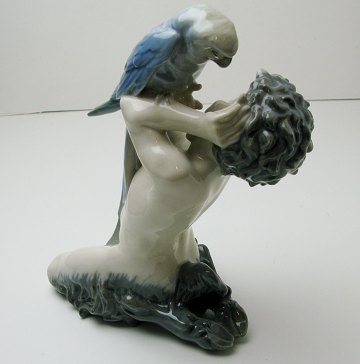 Kgl. figur, dess. 752 i form af faun med blå Ara papegøje. H. ca. 19 cm. 1. sortering